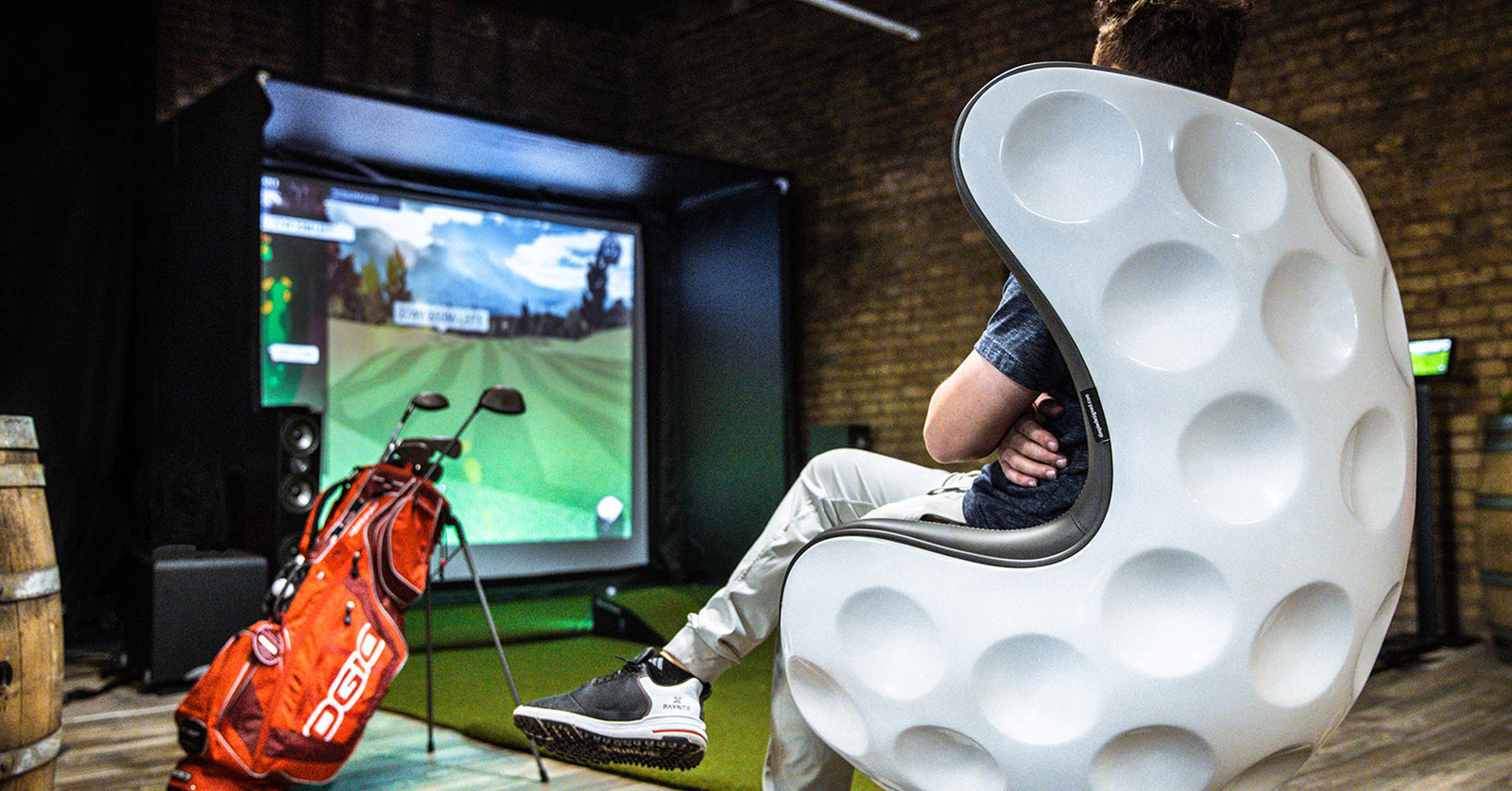 The DimpleChair provides the perfect place to relax, watch TV, play games or contemplate your next round of golf! Perfect for your home, office, swing studio or clubhouse - get yours today!