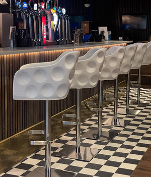 Whether at home, in the office or perhaps even at an exhibition stand the Dimple Bar Stool features our signature dimple contours across the back, creating an instant design classic for anyone who loves golf and bold design.